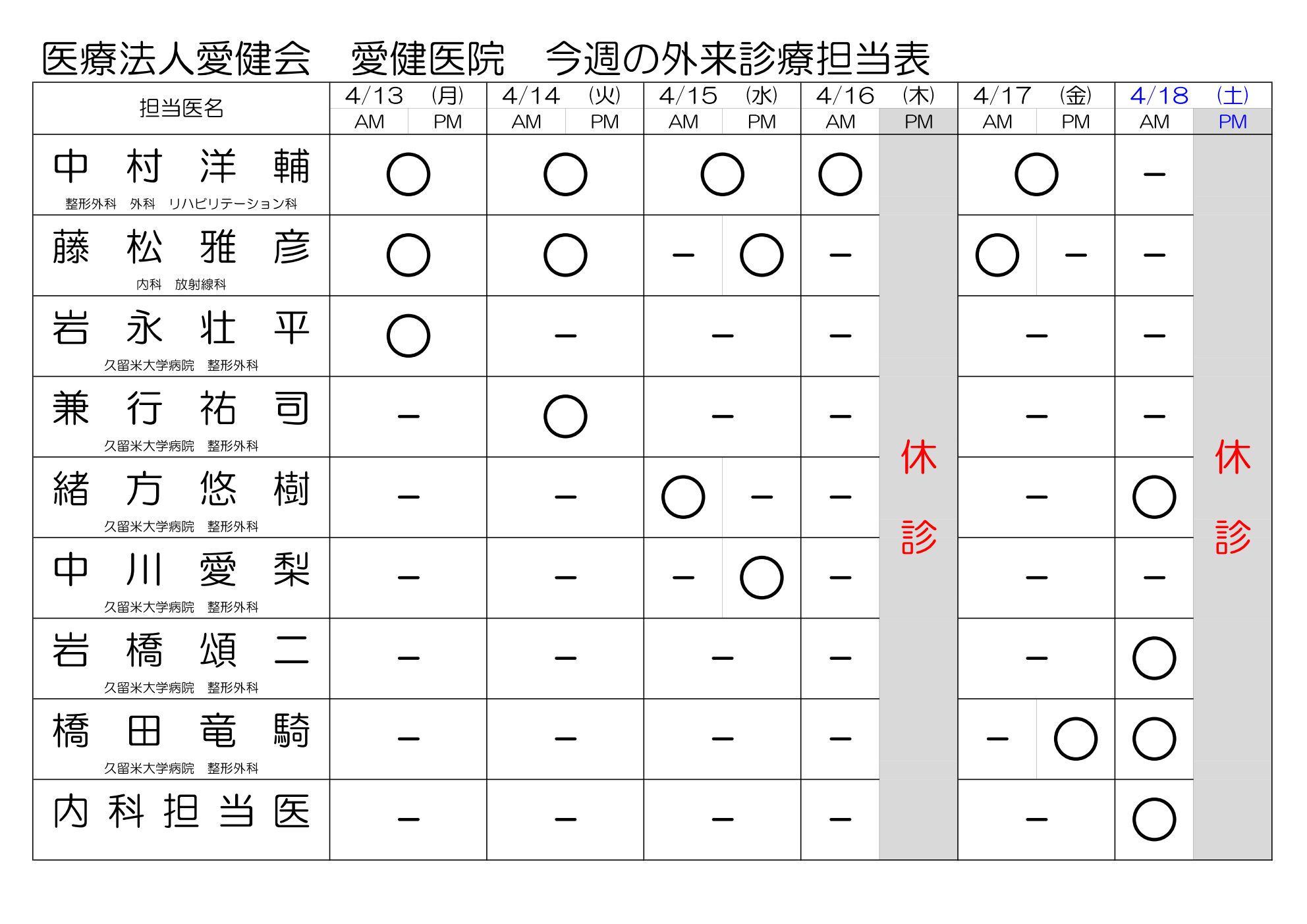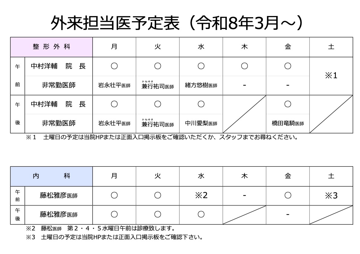都合により担当医師医等が変更している場合がございます。